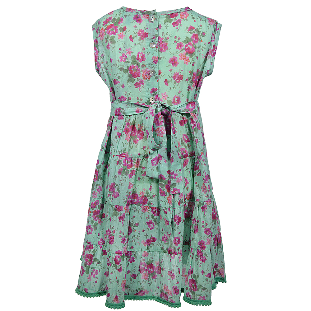Pretty dress with a tiered skirt, buttons down the back and a tie belt at the waist in our printed soft cotton voile. 100% Cotton, machine wash at 40 degrees.